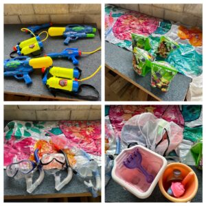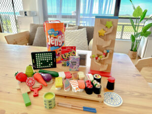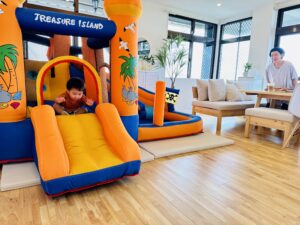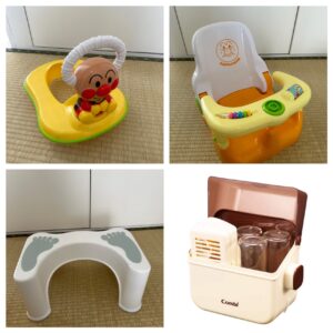 お役立ちグッズ&おもちゃ【ベビー用品や三輪車・ベビーカーございます。海遊びグッズはサービス品ですのでその時々であるもの、ないものがございます。またゲスト様で破れや汚れを確認してお使いいただき、使用後は洗って元の場所にもどしてください。海用ワンタッチテントもご用意しています。】