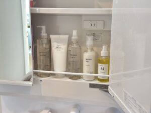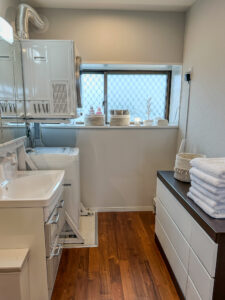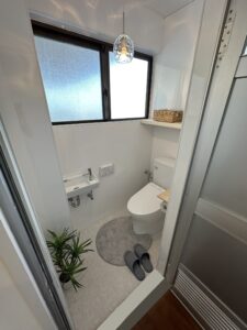 パウダールーム&トイレ【トイレは室内に1つ、室外に1つございます。水遊びしながら外トイレが利用できるので便利!】